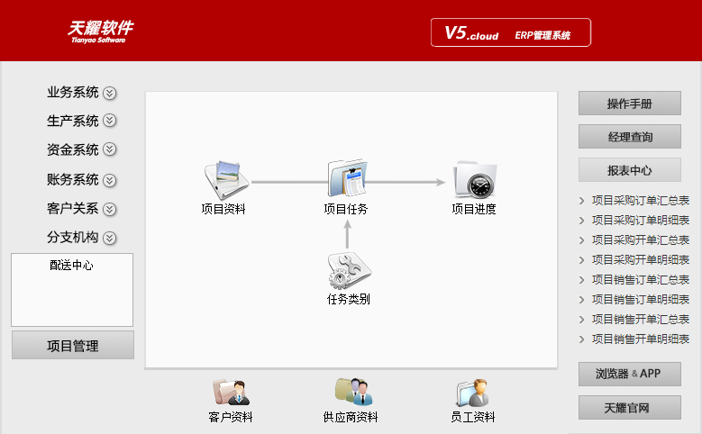 基础资料:共用资料、采购资料、销售资料、仓库资料、POS资料、总账资料、现金资料、人力资料、固定资产资料、报警信息、企业项目、企业信息。