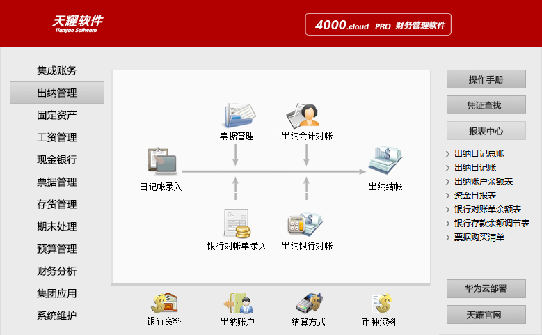 支持自动核对出纳账款、支持出 纳与会计、银行对账。