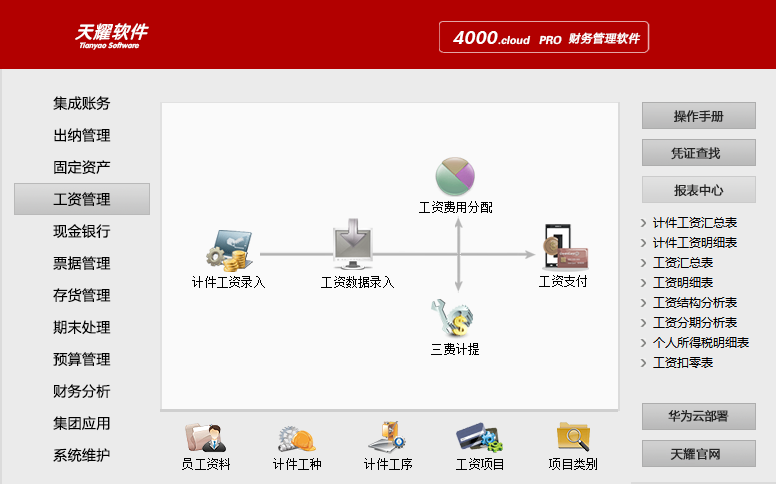支持单月多次发放工资,支持扣零、银行代发、支持代扣个人所得税、工资费用分配、三费计提。