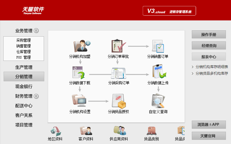 提供分支机构DRP运算、请配单、配送单、分析报表等。