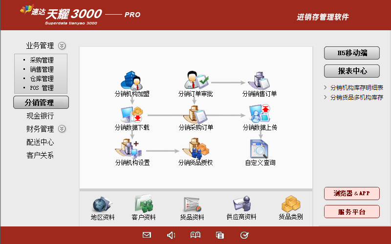 提供分支机构DRP运算、请配单、配送单、分析报表等。