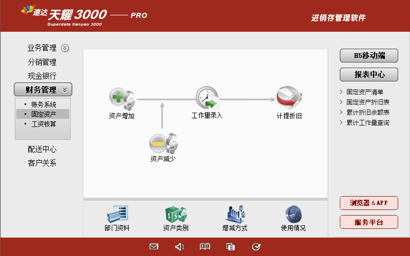 核算管理:多种成本核算方法:个别计价法、先进先出法、移动加权平均法、全月一次加权平均法。