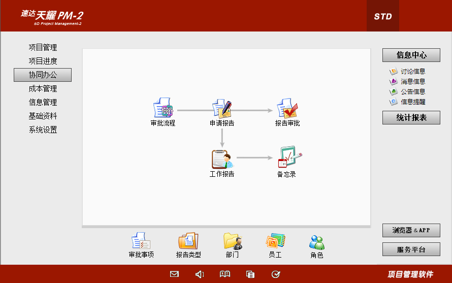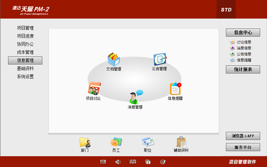 (文档管理、公告管理、项目讨论、消息管理、信息提醒)