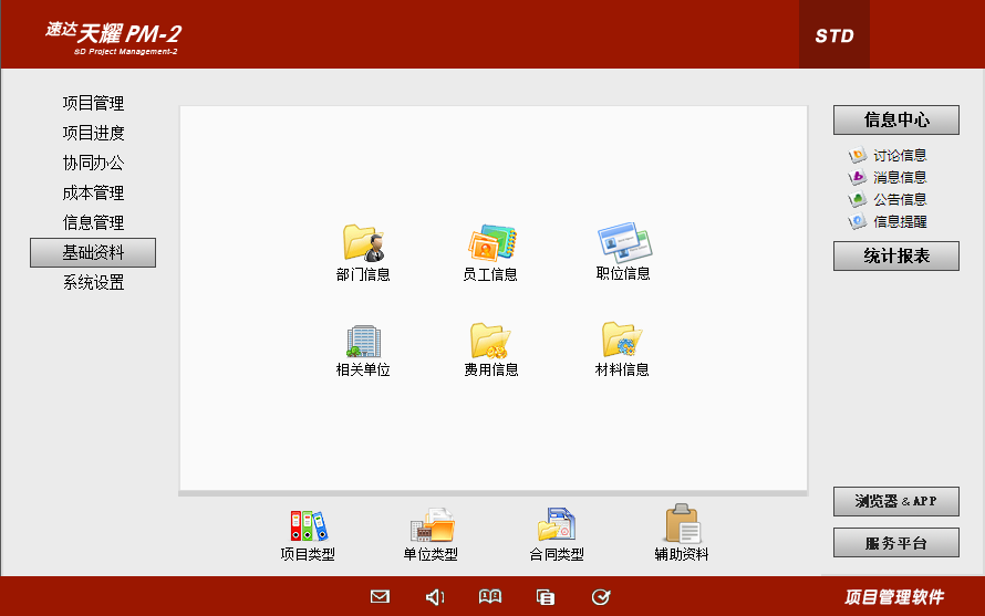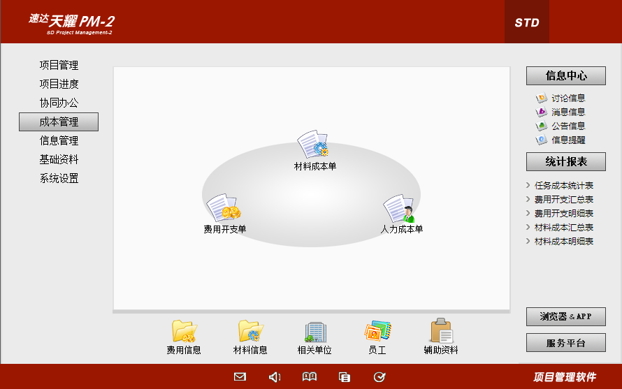 支持材料信息、费用信息、项目类型、单位类型、相关单位的录入、查询和跟踪;