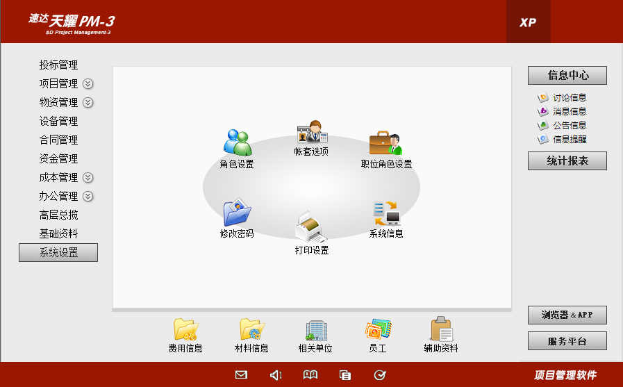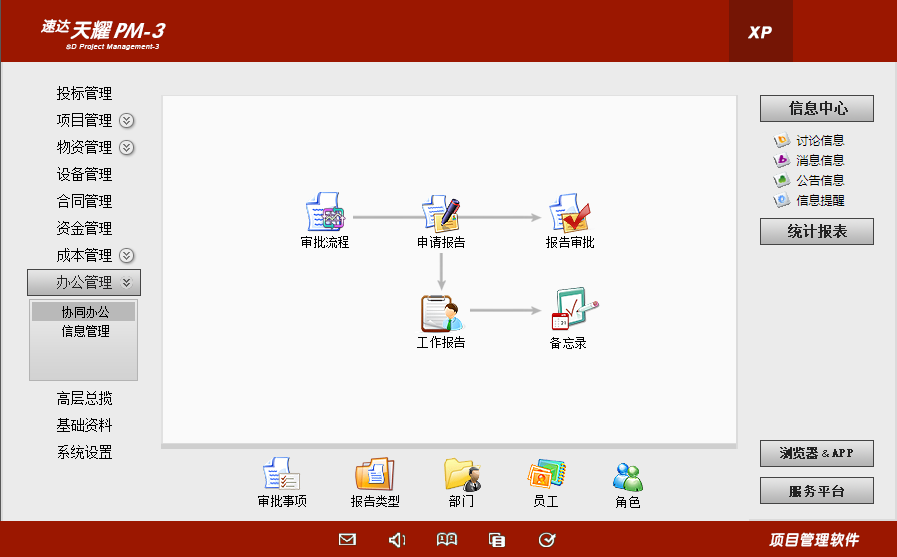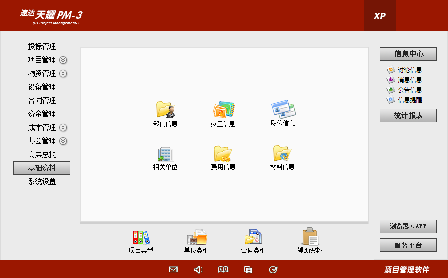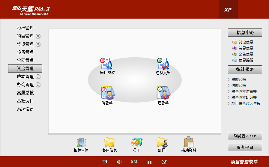 产品特别适合中型项目的应用,满足各类行业项目的运营管理,支持多项目并行管理,系统支持桌面应用、浏览器方式应用、APP应用