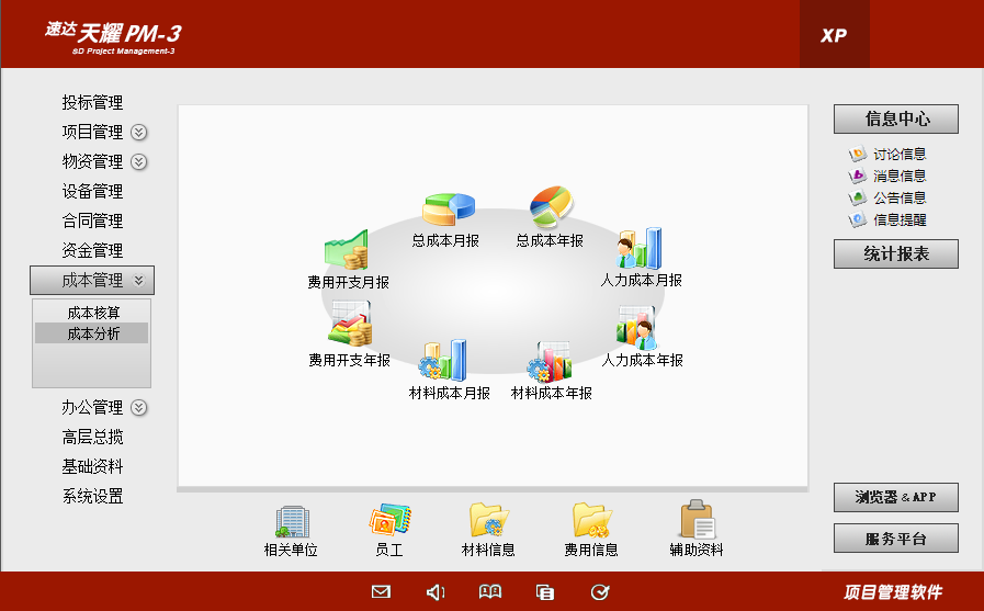 (项目总成本月报、项目总成本年报、项目费用开支月报、项目费用开支年报、项目材料成本月报、项目材料成本年报、项目人力成本月报、项目人力成本年报)