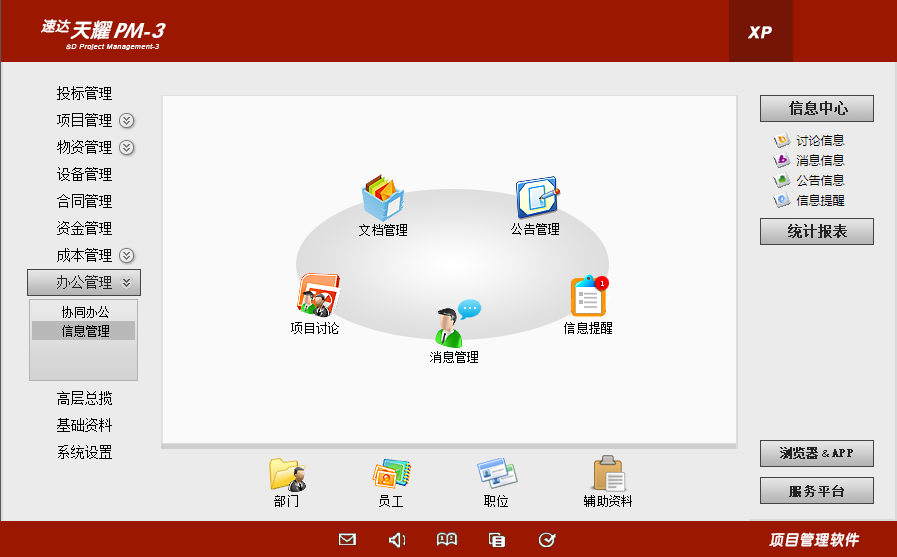 (文档管理、公告管理、项目讨论、消息管理、信息提醒)